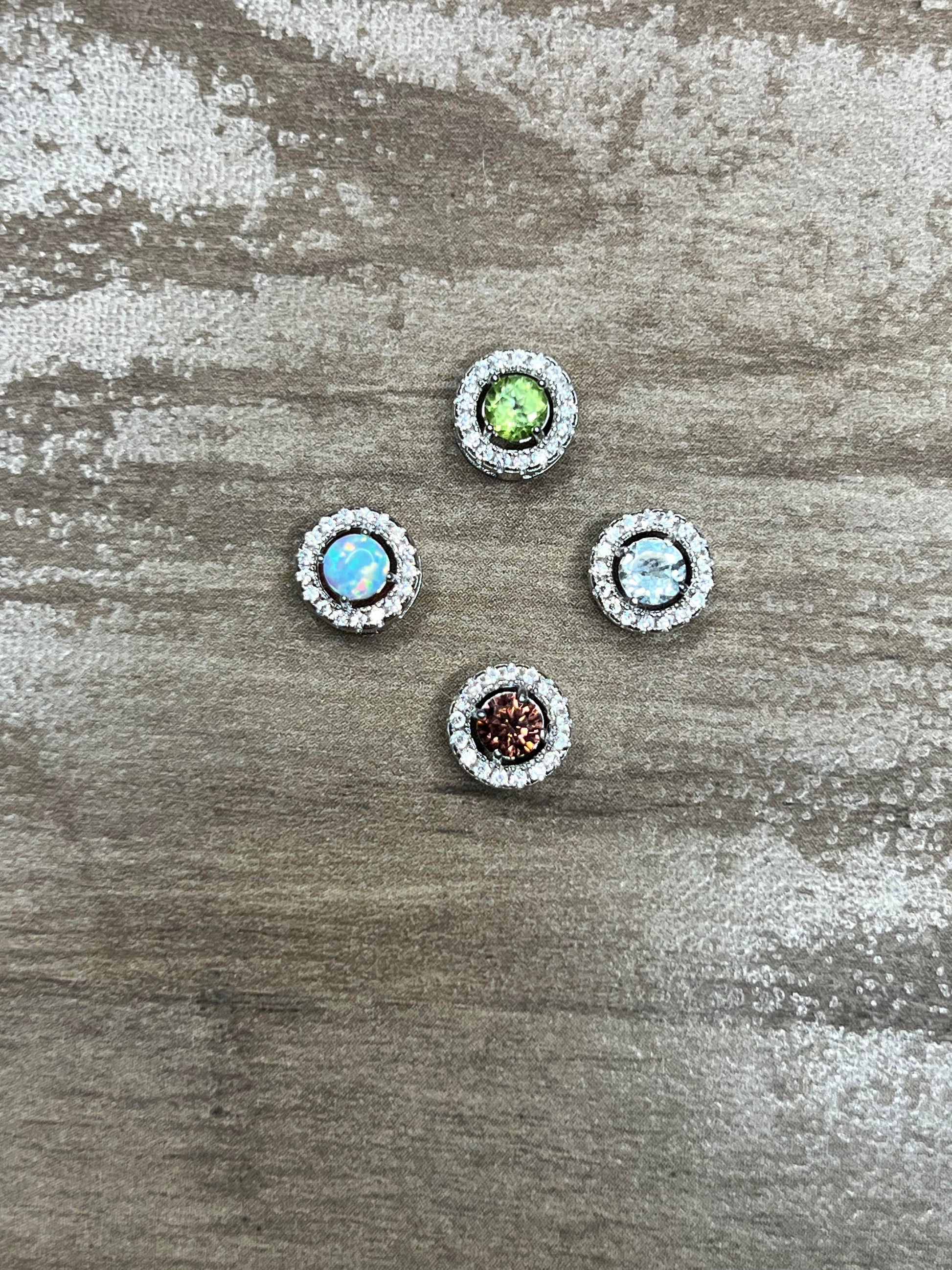 Each birthstone is mounted in a 4MM .925 sterling silver halo setting with accent cubic zirconia stones. Choose your birthstone month - EACH halo mount costs $15! Make sure to add-on each one you'd like for your pendant.