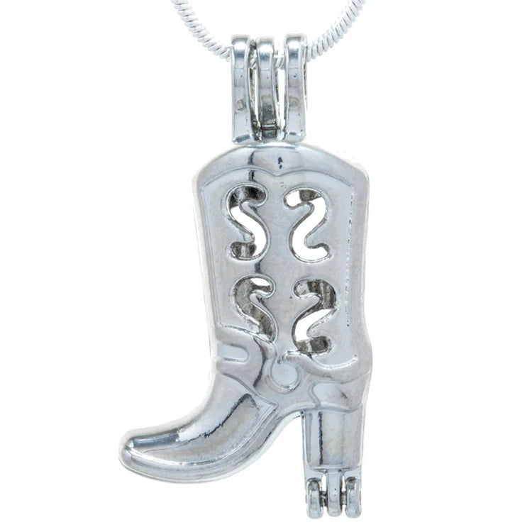 This cage is silver plated and comes with a rice oyster opening! You are welcome to purchase more rice oysters or round oysters to have more pearl color options for your cage - see oyster openings tab!