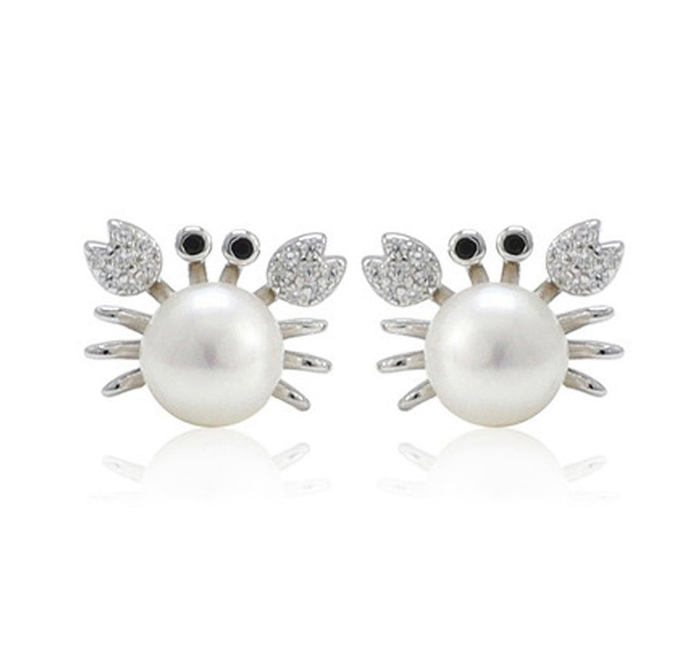 These crab pearl stud earrings are solid sterling silver with accent cubic zirconia stones! They will come with a twin oyster opening with guaranteed matching pearls! If you'd like to purchase more twin openings - check out our oyster openings tab!