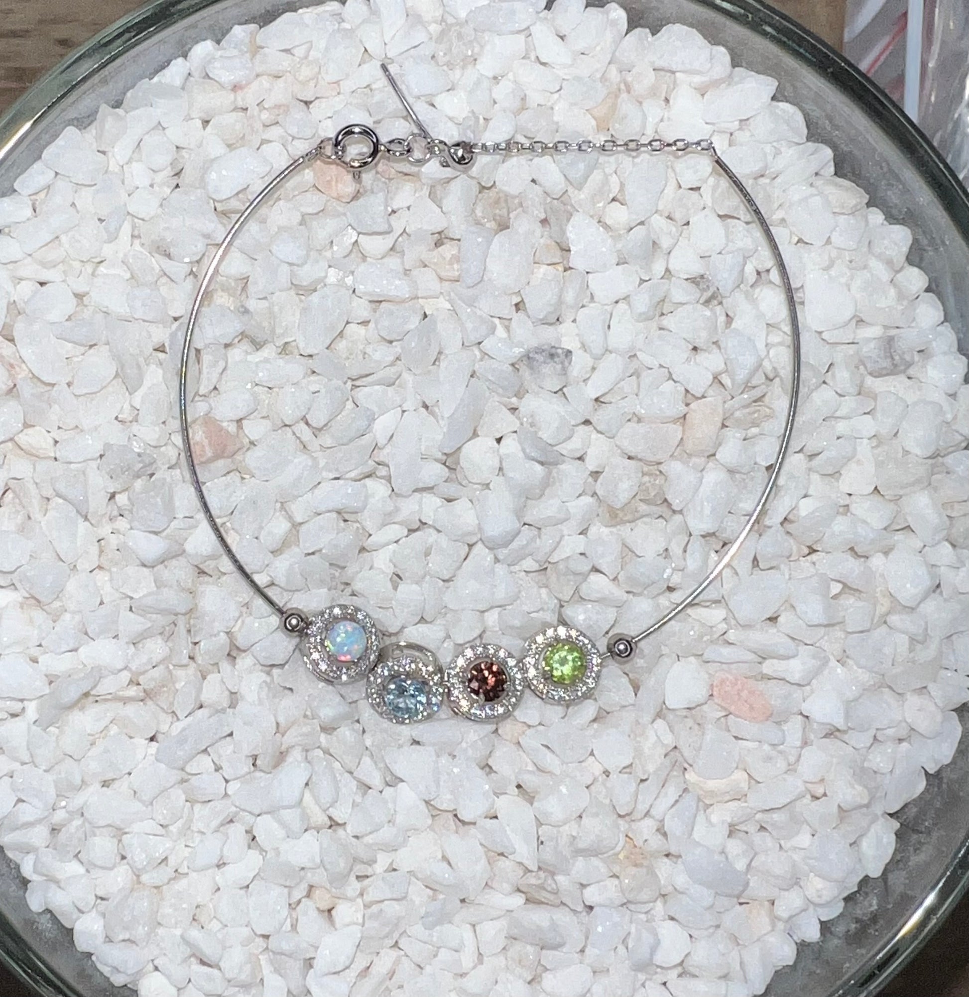 Each birthstone is mounted in a 4MM .925 sterling silver halo setting with accent cubic zirconia stones. This bracelet is .925 sterling silver with a 23.6" inner diameter and a 1.5" extender.